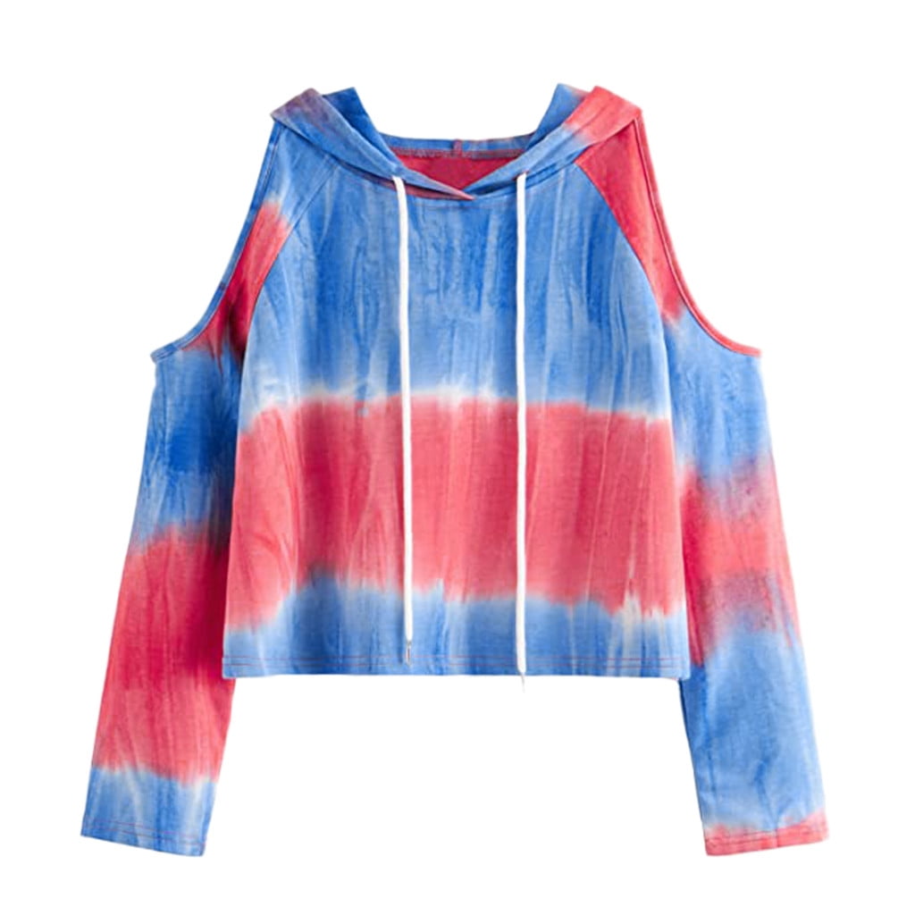 Stormdoing Hoodies For Womens Tie Dye Causal Cold Shoulder Long Sleeve V Neck Sweatshirt Top Blouse Walmart Com